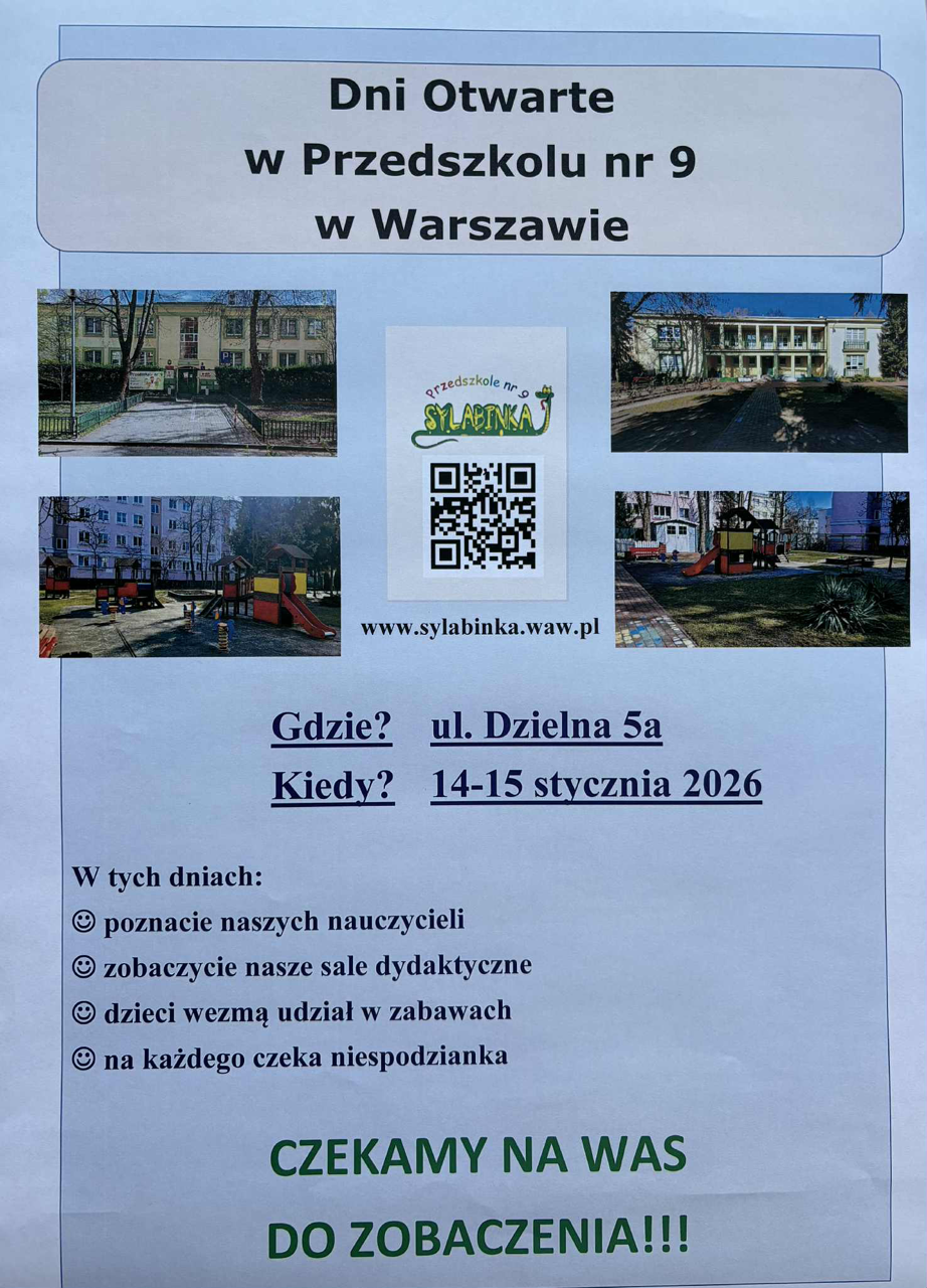 Z wielką radością i przyjemnością zapraszamy Państwa wraz z dziećmi na nasze coroczne Dni Otwarte, które odbędą się w tym roku 14 i 15 stycznia. Czekamy na Państwa w godzinach od 9:00 do 16:30.