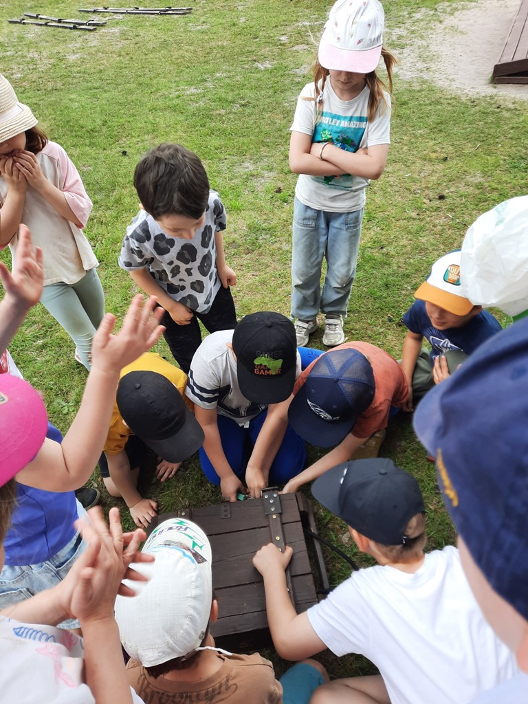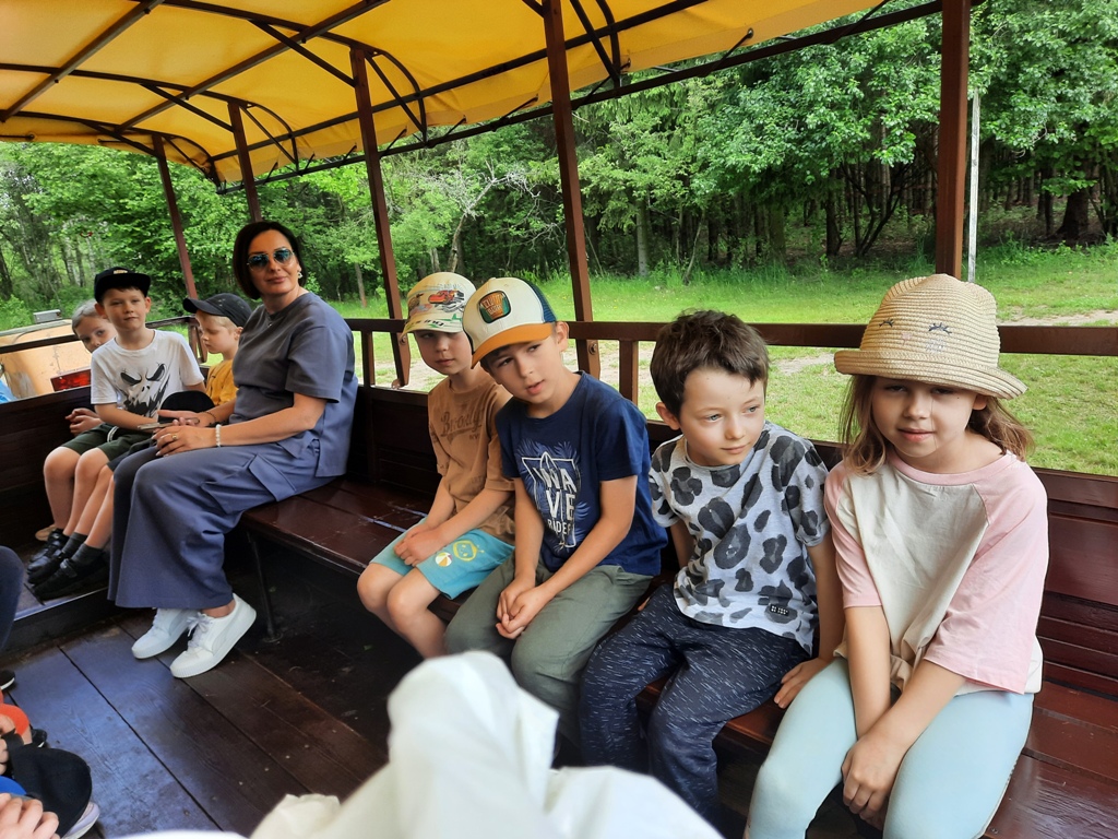 Z okazji tegorocznego Dnia Dziecka przedszkolaki udały się w dniu 02.06.2025 roku na wycieczkę do "ARGO-CITY" Głęboczyca. Podczas wyjazdu każda z grup brała udział w dedykowanej dla niej aktywności, maluchy odkrywały "Bajki z Zaczarowanego Lasu", średniaki - "Integrowały się w Argo City", natomiast starszaki mogły "Być jak Indiana Jones". Ponadto każda z grup brała udział w następujących atrakcjach: przejażdżka wozem po okolicy, dojenie sztucznej krowy, poszukiwanie złota w kopalni, leśny labirynt, zjeżdżalnia linowa - tyrolka, połów drewnianych rybek, przeciąganie liny oraz zabawy ruchowe na świeżym powietrzu, jak i placu zabaw. Dzieci z wielkim zainteresowaniem brały udział we wszystkich zaproponowanych aktywnościach, miło i przyjemnie spędziły dzień na łonie natury.